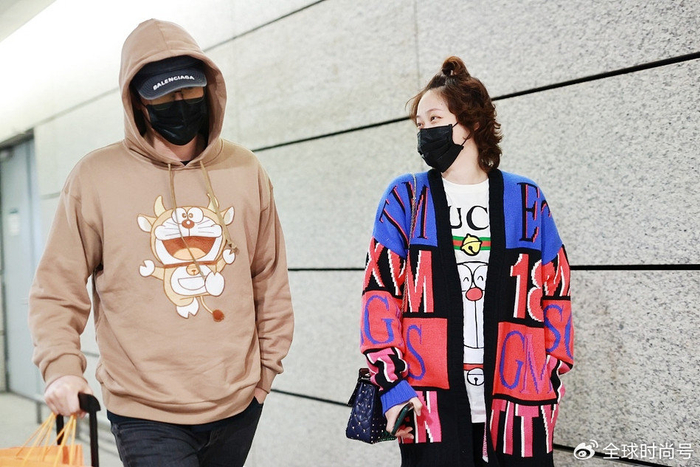 长途旅行的属性,让吴莎的机场穿搭以舒适为核心。她常选择宽松版型的针织衫、卫衣或风衣,搭配休闲裤、运动裤,脚下踩一双柔软的运动鞋或乐福鞋,既能应对长时间奔波,又不失质感。色彩上多以黑白灰、卡其色等基础色为主,无过多装饰,仅靠版型与材质凸显高级感。